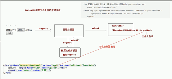b、jsp中写的上传文件名必须和controller的方法的接收参数名称相同