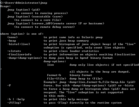 jhat命令对dump文件进行分析,jhat用法如下图: