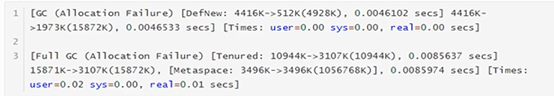 打印出的日志信息:PSYoungGen说明使用了并行垃圾收集器,而后边显示的信息就是年轻代的垃圾收集信息。ParOldGen说明老年代也使用的并行垃圾收集器,后边跟的是老年代垃圾收集的信息。