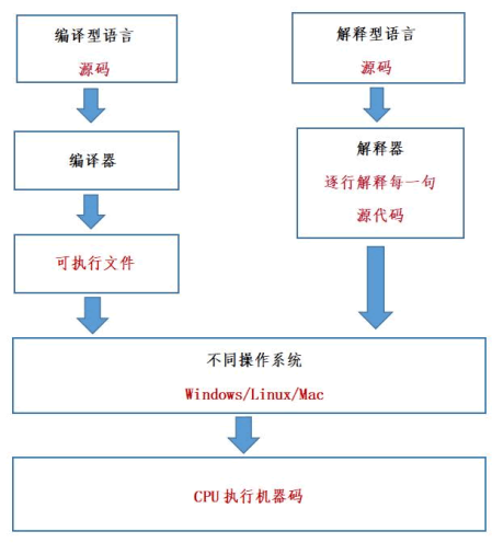 解释型语言无需预先编译,而是由解释器逐行对源码进行解释,一边解释一边执行。
