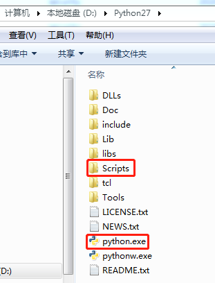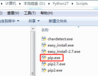 Pip.exe在目录D:\Python27\Scripts下面,这两个目录是配置环境变量的路径