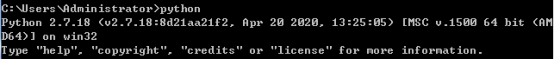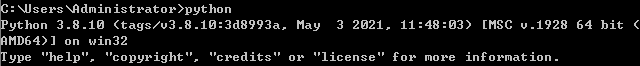 输入python,返回版本信息,证明python安装及环境变量配置正确