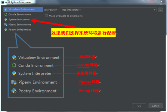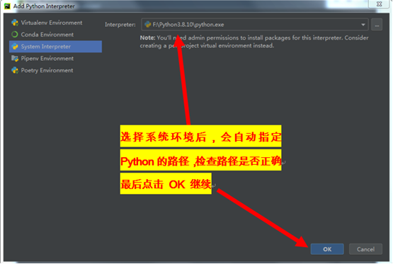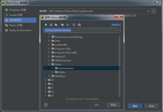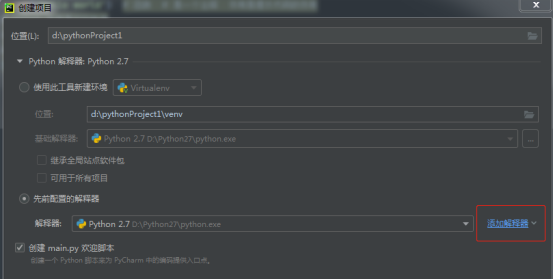 如果安装多个Python版本,可选择添加解释器,选择需要的python版本