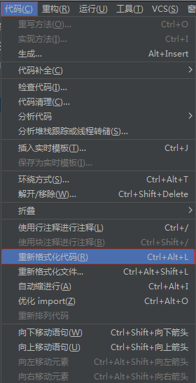 优化格式:Ctrl+Alt+L,或者代码--重新格式化代码