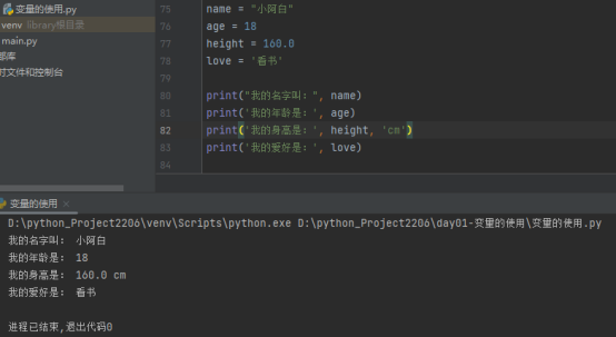 值:表示对象所存储的具体数据,使用print(obj)对值进行打印输出