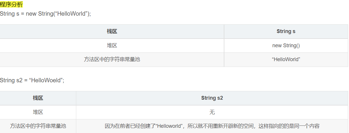 前者在使用时创建了两个对象,一个在堆内存中,一个在方法区中