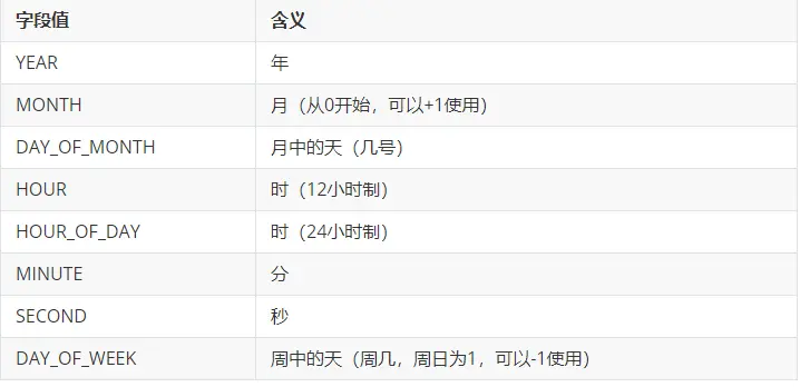 public abstract void add(int field, int amount):根据日历的规则,为给定的日历字段添加或减去指定的时间量。 -