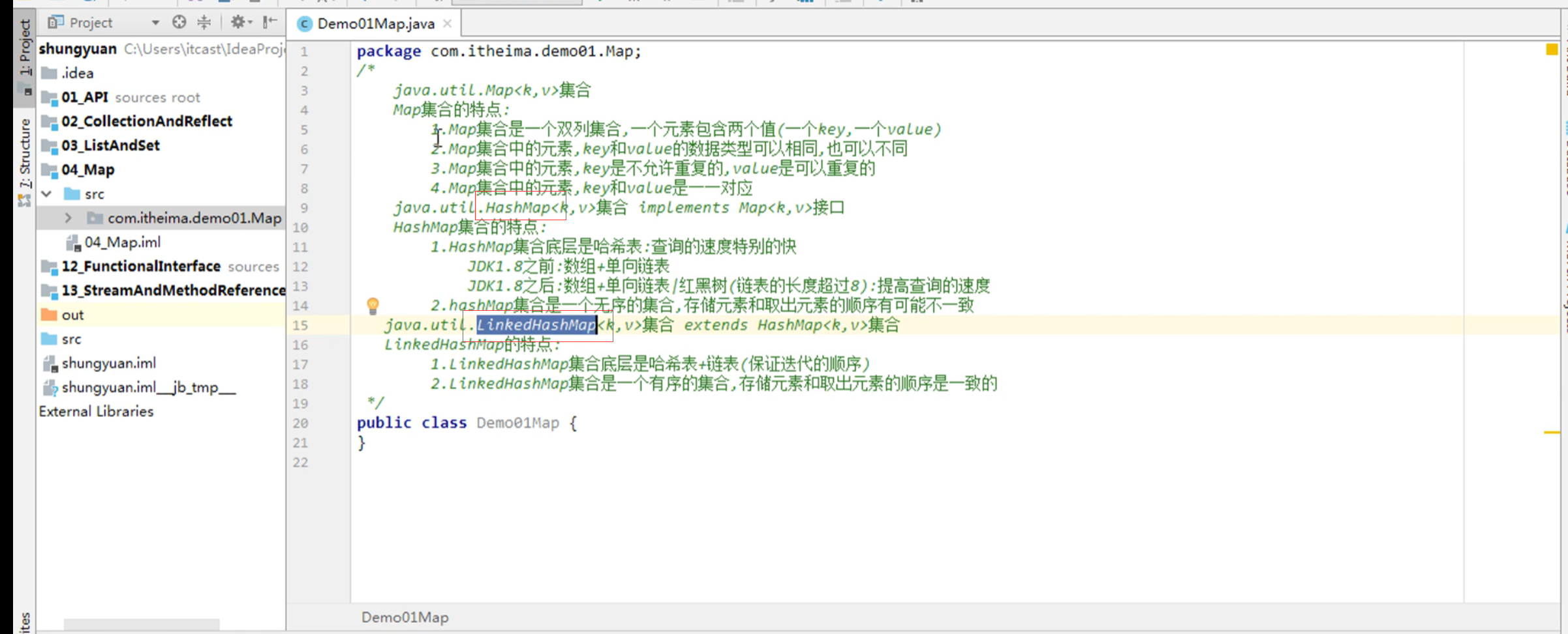 2.hashMap集合是一个无序的集合,存储元素和取出元素的顺序有可能不一致 - java.util.LinkedHashMap集合 extends HashMap集合
