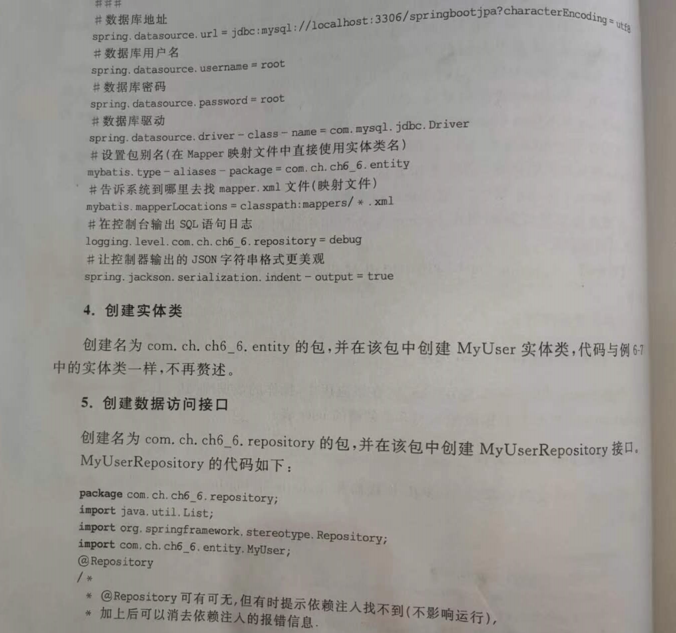server.servlet.context-path=/ch6_6 ### ##数据源信息配置 ### #数据库地址 spring.datasource.url=jdbc:mysql://localhost:3306/springbootjpa?characterEncoding=utf8 #数据库MySQL为8.x时,url为jdbc:mysql://localhost:3306/springbootjpa?useSSL=false&serverTimezone=Asia/Beijing&characterEncoding=utf-8 #数据库用户名 spring.datasource.username=root #数据库密码 spring.datasource.password=root #数据库驱动 spring.datasource.driver-class-name=com.mysql.jdbc.Driver #数据库MySQL为8.x时,驱动类为com.mysql.cj.jdbc.Driver #设置包别名(在Mapper映射文件中直接使用实体类名) mybatis.type-aliases-package=com.ch.ch6_6.entity #告诉系统在哪里去找mapper.xml文件(映射文件) mybatis.mapperLocations=classpath:mappers/*.xml #在控制台输出SQL语句日志 logging.level.com.ch.ch6_6.repository=debug #让控制器输出的JSON字符串格式更美观 spring.jackson.serialization.indent-output=true