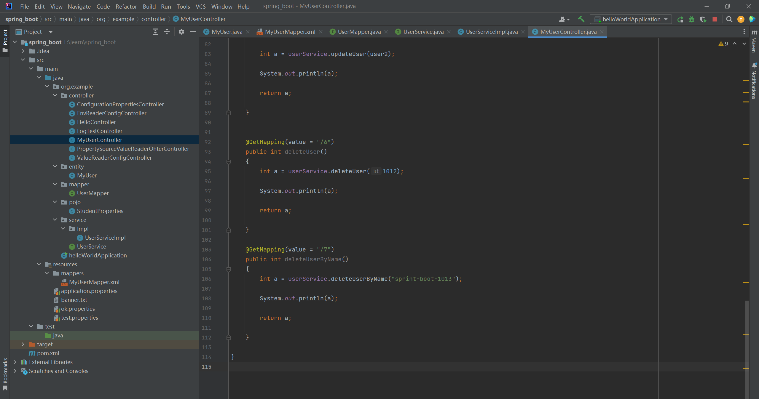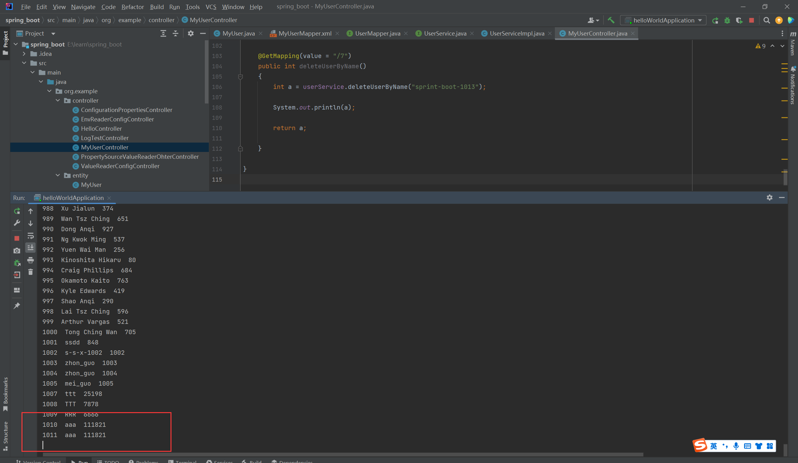 spring boot——spring boot的基本配置——spring boot整合mybatis——本地实例运行——删除操作——int类型——根据name删除数据