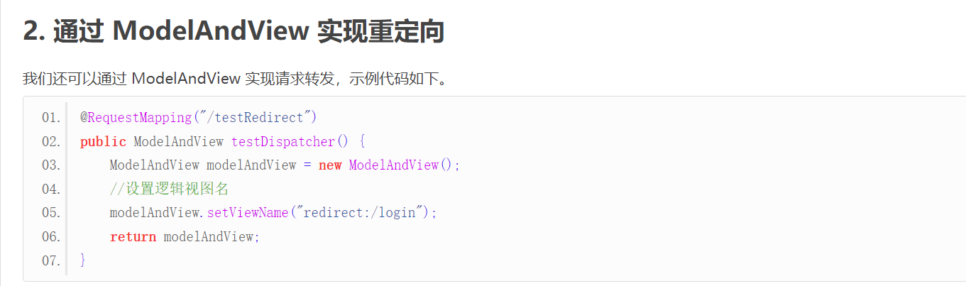 package org.example.controller.requestparam; import org.springframework.stereotype.Controller; import org.springframework.web.bind.annotation.RequestMapping; import org.springframework.web.bind.annotation.ResponseBody; import org.springframework.web.servlet.ModelAndView; @Controller public class RequestForwardingAndRedirectionController { // http://localhost:8080/hello @ResponseBody @RequestMapping("/helloTest001") public String helloTest001() { return "Hello World!____________china"; } /** * * 在 Spring MVC 中,实现请求转发的最常用的方式两种,下面我们就来对它们进行介绍。 * 1. 通过 String 类型的返回值实现转发 * * @return */ // http://localhost:8080/testDispatcher @RequestMapping("/testDispatcher") public String testDispatcher() { return "forward:/helloTest001"; } /** * 在 Spring MVC 中,实现请求转发的最常用的方式两种,下面我们就来对它们进行介绍。 * 2. 通过 ModelAndView 实现转发 * * * @return */ // http://localhost:8080/testDispatcher2 @RequestMapping("/testDispatcher2") public ModelAndView testDispatcher2() { ModelAndView modelAndView = new ModelAndView(); //设置逻辑视图名 modelAndView.setViewName("forward:/helloTest001"); return modelAndView; } /** * * *重定向 * 我们可以在控制器方法指定逻辑视图名(View Name)时,使用“redirect:”关键字进行重定向操作。 * * 当控制器方法中所设置的视图名称以“redirect:”为前缀时,该视图名称不会被 Spring MVC 配置的视图解析器解析,而是会将前缀“redirect:”去掉,以剩余部分作为最终路径通过重定向的方式实现跳转。 * * 在 Spring MVC 中,实现重定向的最常用的方式两种,下面我们就来对它们进行介绍。 * 1. 通过 String 类型的返回值实现重定向 * */ // http://localhost:8080/testRedirect @RequestMapping("/testRedirect") public String testRedirect() { return "redirect:/helloTest001"; } /** * *2. 通过 ModelAndView 实现重定向 * */ // http://localhost:8080/testRedirect23 @RequestMapping("/testRedirect23") public ModelAndView testDispatcher23() { ModelAndView modelAndView = new ModelAndView(); //设置逻辑视图名 modelAndView.setViewName("redirect:/helloTest001"); return modelAndView; } }