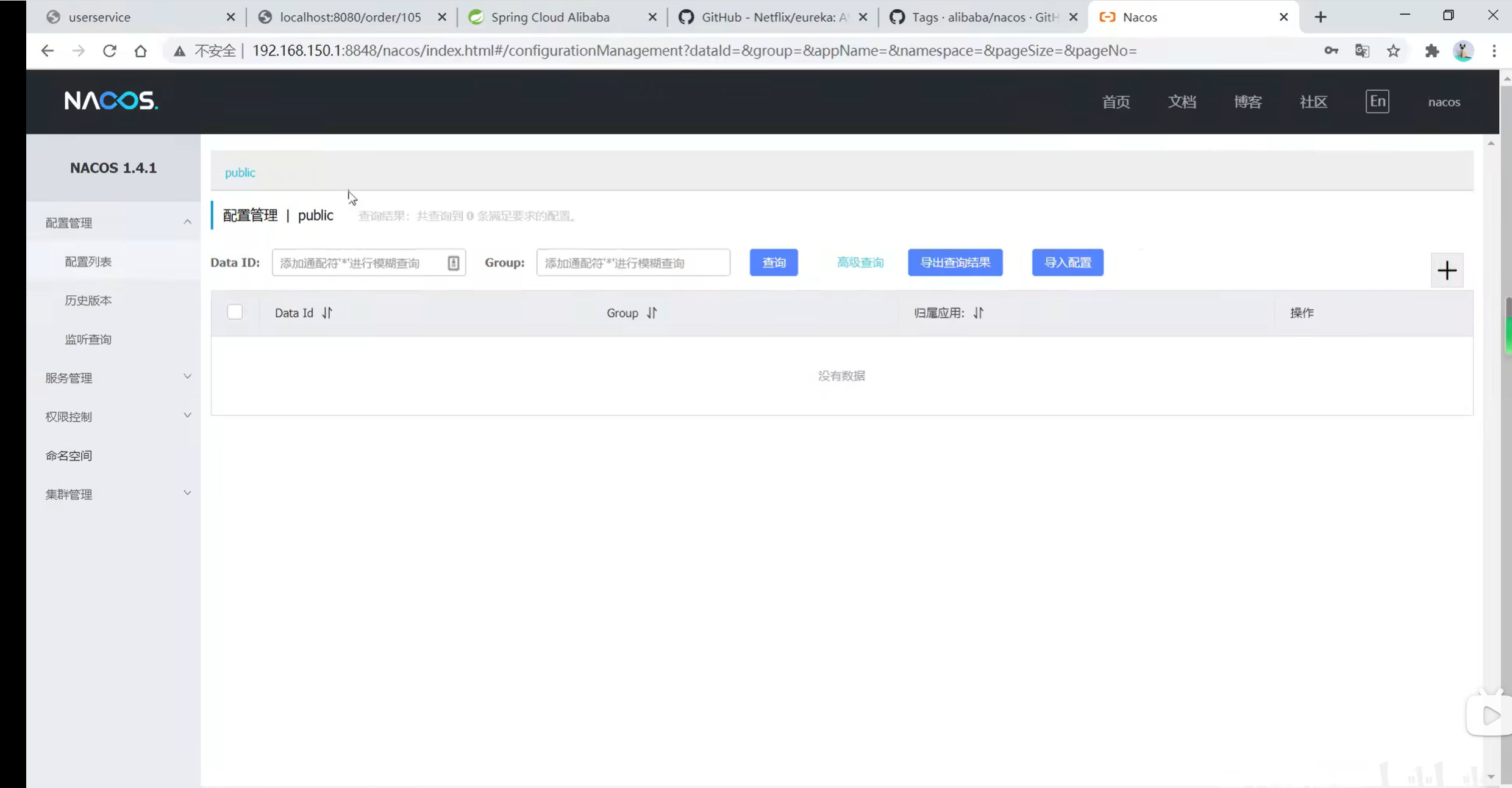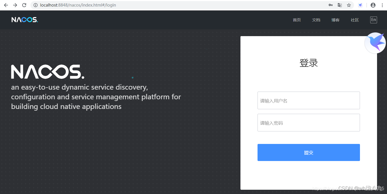 运行成功以后,启动nocas的控制面板,启动nacos服务后,默认端口8848,访问地址:http://localhost:8848/nacos/index.html。登陆账号和密码默认都是 nacos