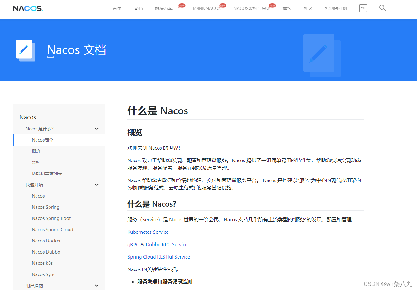 Nocas文档:https://nacos.io/zh-cn/docs/what-is-nacos.html