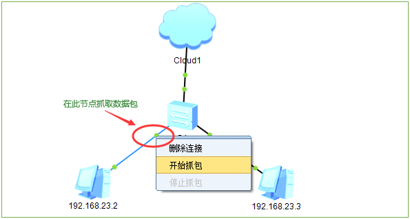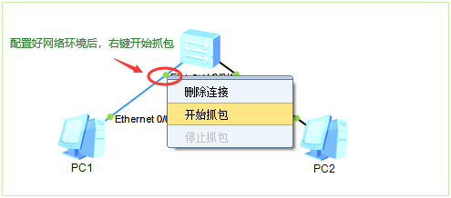 例一:在eNSP中搭建好网络环境,对任意节点调用Wireshark抓包。
