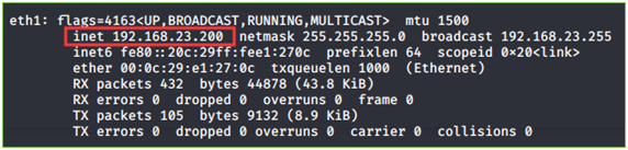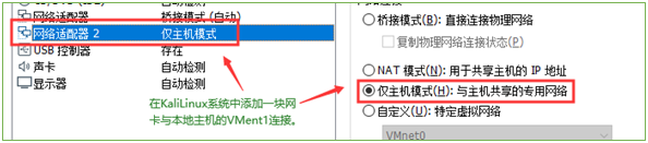 进入KaliLinux虚拟系统,将eth1网卡IP地址配置成如下地址: