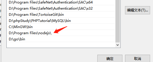 在全局变量中将上面node 安装的目录添加至系统变量中