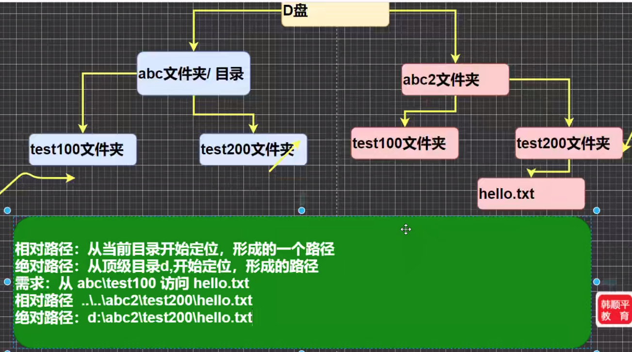 绝对路径:从顶级目录/根目录(比如d)开始定位形成的路径。