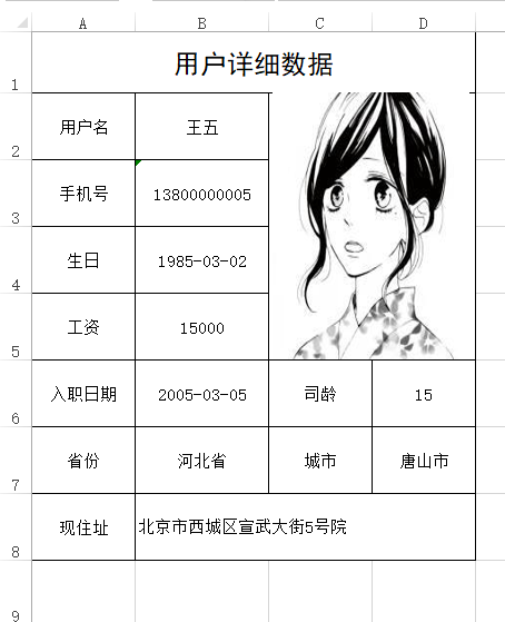 sheet.getRow(2).getCell(1).setCellValue(user.getPhone());