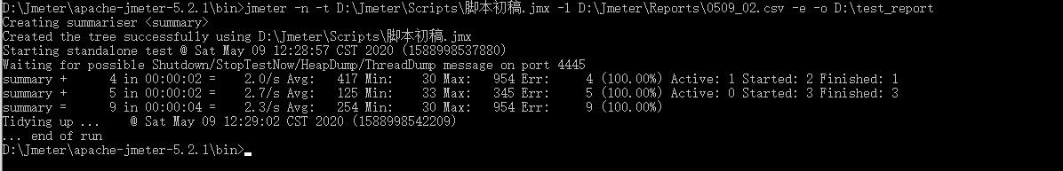 jmeter -n -t D:\Jmeter\Scripts\百度.jmx -l D:\Jmeter\Reports\test042801.csv -e -o D:\test_report