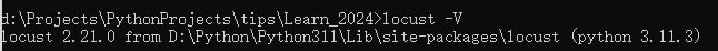 2)校验是否安装成功:输入locust -V,出现如下图所示,表示安装成功;