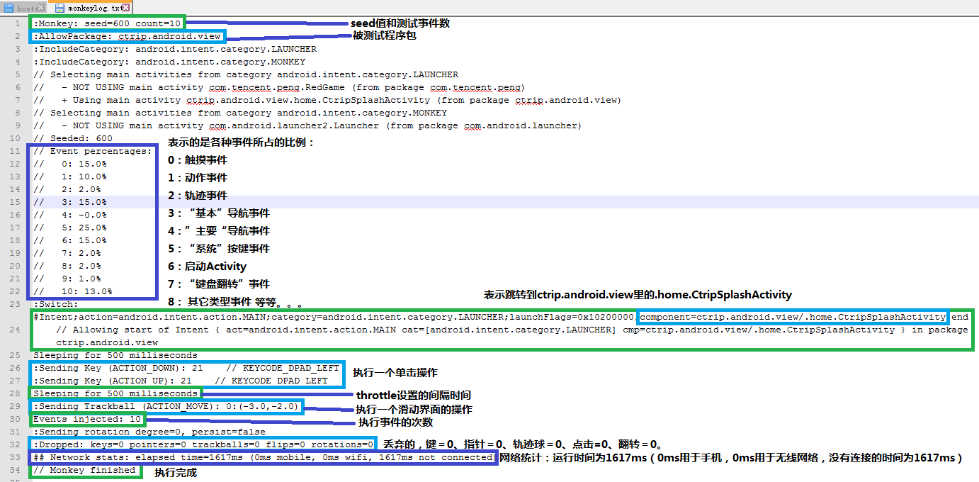 -s,指定固定的seed值(伪随机数生成器的seed值。如果用相同的seed值再次运行monkey,将生成相同的事件序列);