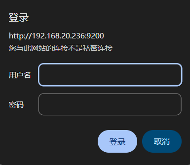 ES启动成功后,就可以通过浏览器访问http://192.168.20.236:9200/,提示需要用户名和密码,但是此时还没有创建用户。