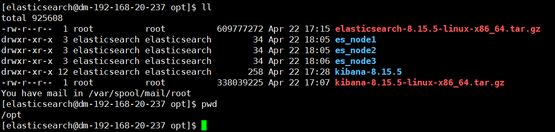 chown -R elasticsearch:elasticsearch elasticsearch-8.15.5 kibana-8.15.5-linux-x86_64