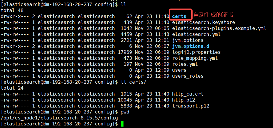 不修改其他任何配置文件,在任意虚拟节点(比如es_node1)的elasticsearch-8.15.5目录下执行: