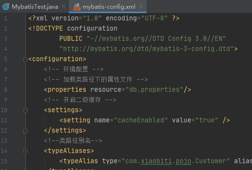 开启二级缓存需要在mybatis-config.xml中插入。。。需要在properties后面插入