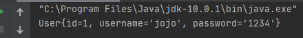 1 package com.xiaobiti; 2 3 public class User { 4 private int id; 5 private String username; 6 private String password; 7 8 public User(int id, String username, String password) { 9 this.id = id; 10 this.username = username; 11 this.password = password; 12 } 13 14 @Override 15 public String toString() { 16 return "User{" + 17 "id=" + id + 18 ", username='" + username + '\'' + 19 ", password='" + password + '\'' + 20 '}'; 21 } 22 }