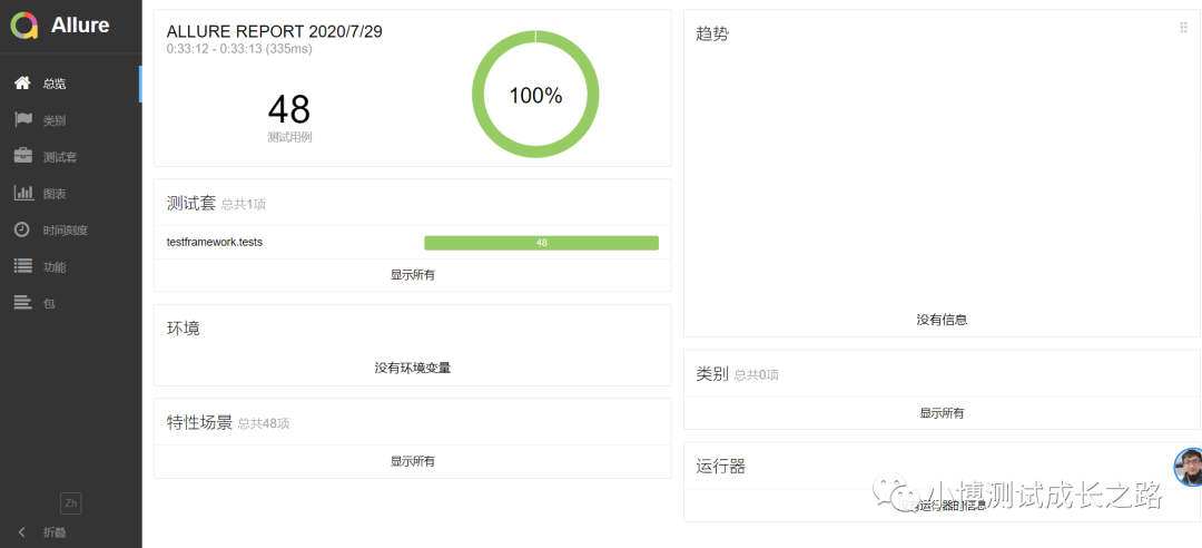 到此,allure报告就生成了,至于报告怎么去分析和查看,可以将报告切换为中文版本自己去进行分析即可。