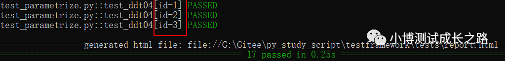 @pytest.mark.parametrize('a',[1,2,3 ],ids=('id-1','id-2','id-3' ))def test_ddt04(a):assert a<5