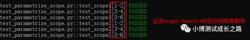 import pytest@pytest.mark.parametrize('test_input, expected', [(1, 2), (3, 4),(5,6)], scope='module')def test_scope1(test_input, expected):pass@pytest.mark.parametrize('test_input, expected', [(1, 2), (3, 4),(5,6)], scope='module')def test_scope2(test_input, expected):pass