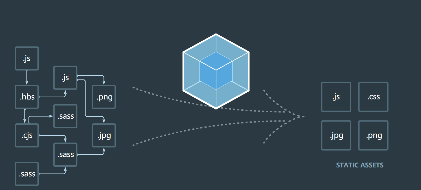 这段话里面有三个关键词:静态模块,dependency graph,bundle。从官网首页给出的图我们可以得知所谓静态模块,指的不外乎就是:js脚本,css样式表,图片,字体等