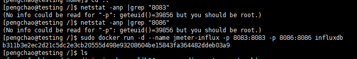 $docker run -d --name jmeter-influx -p 8083:8083 -p 8086:8086 influxdb