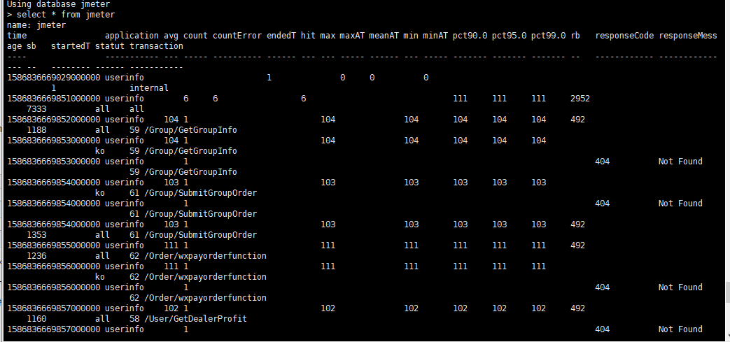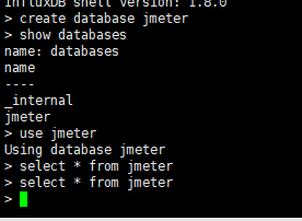 运行Jmeter脚本,然后再次在influxdb中查看数据,发现类似下面的数据说明输入导入成功: