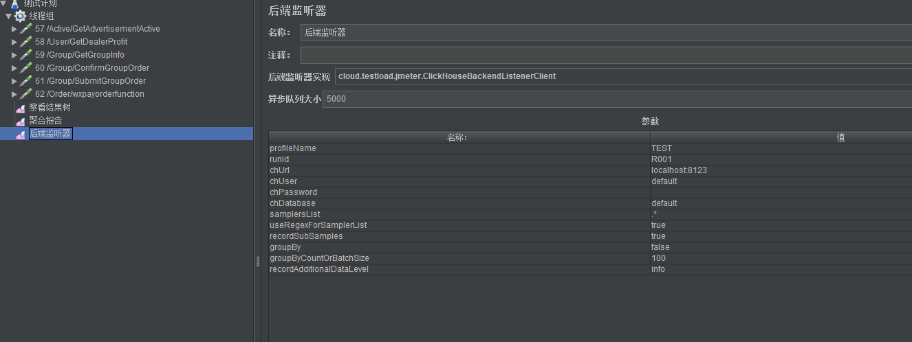 先看一下配置好的Backend Listener: