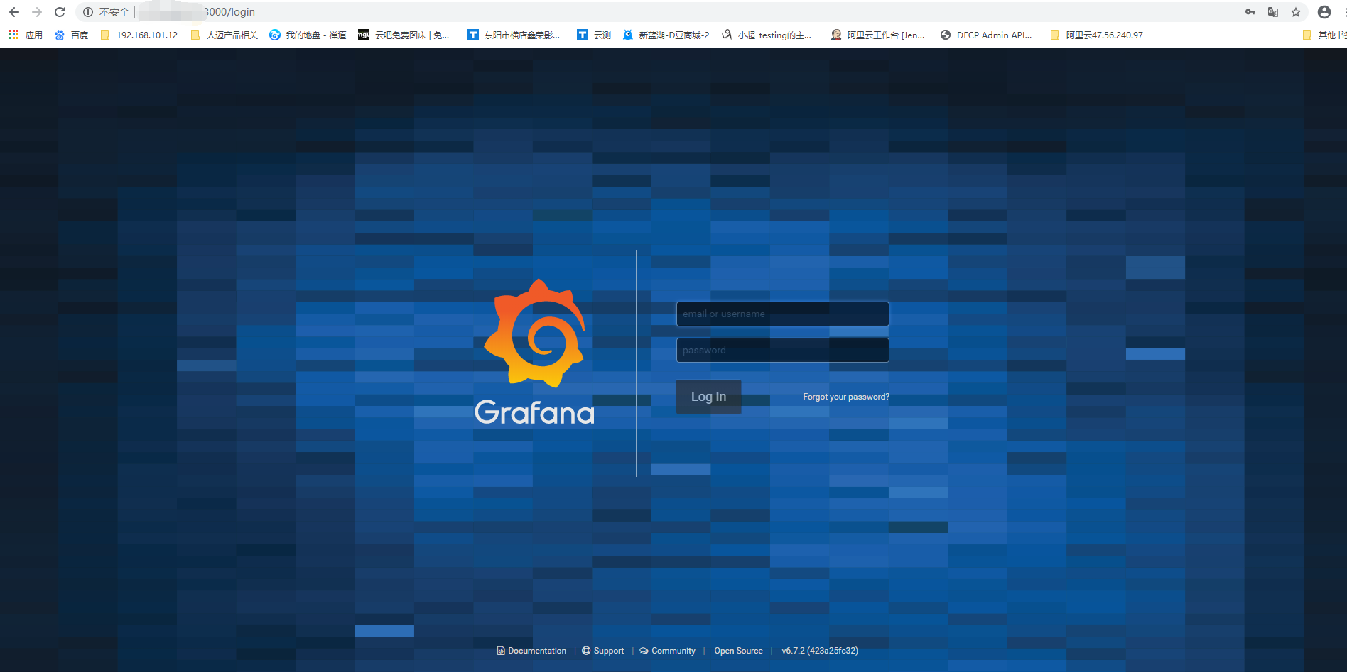 3)网页端访问locahost:3000(根据自己的)验证部署成功。初次登录时的账号密码是admin/admin;