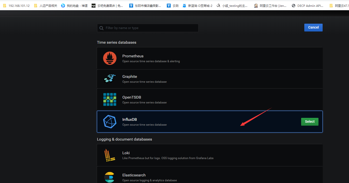 5)找到并选择influxdb: