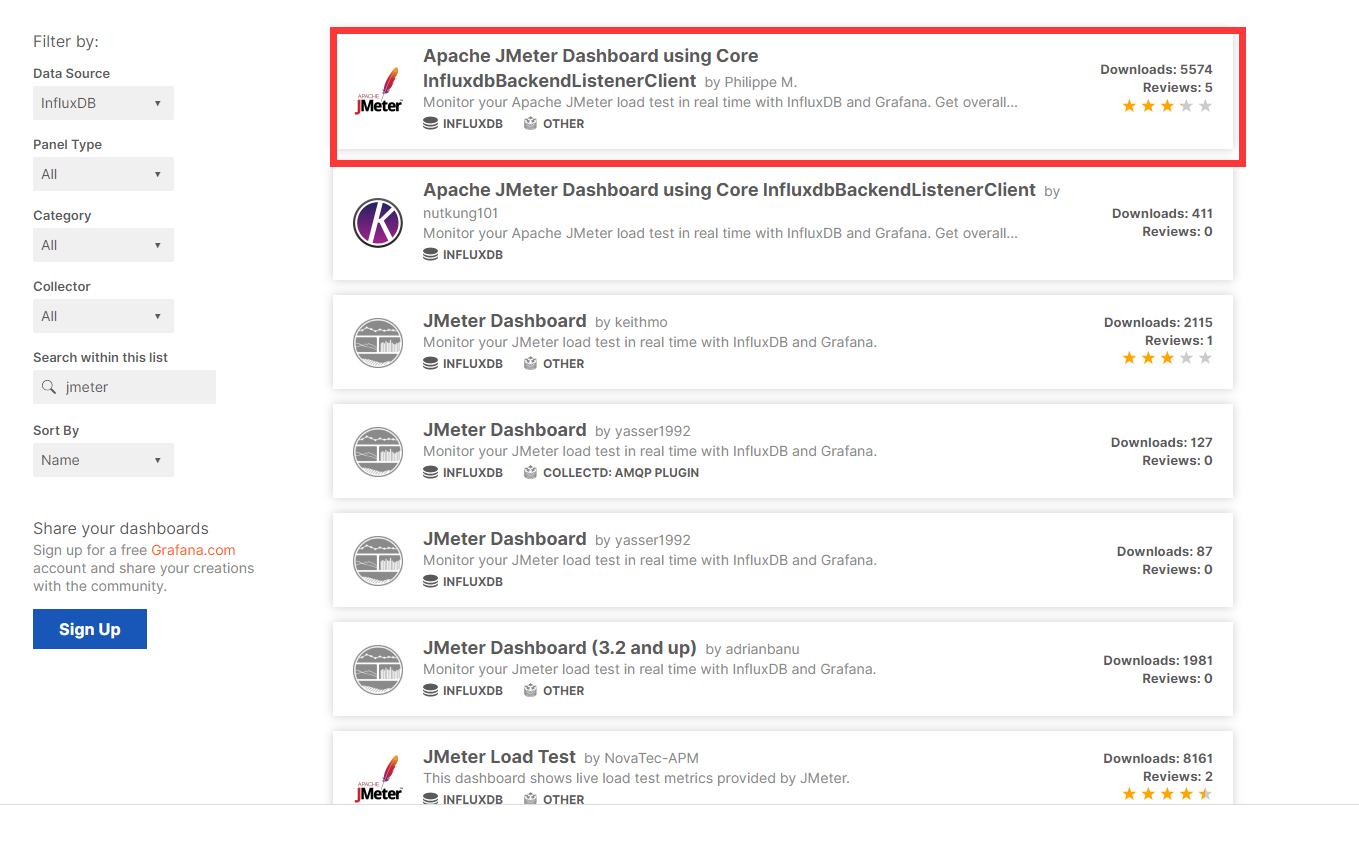 https://grafana.com/grafana/dashboards?dataSource=influxdb&search=jmeter