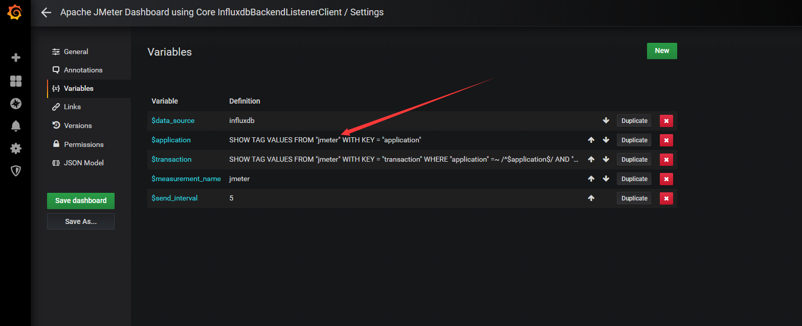 注意:如果我们修改过表名,也就是在jmeter的Backend Listener的measurement配置(默认为jmeter),这个时候就需要去设置中进行修改(我这里使用的就是默认的,所以无需修改):