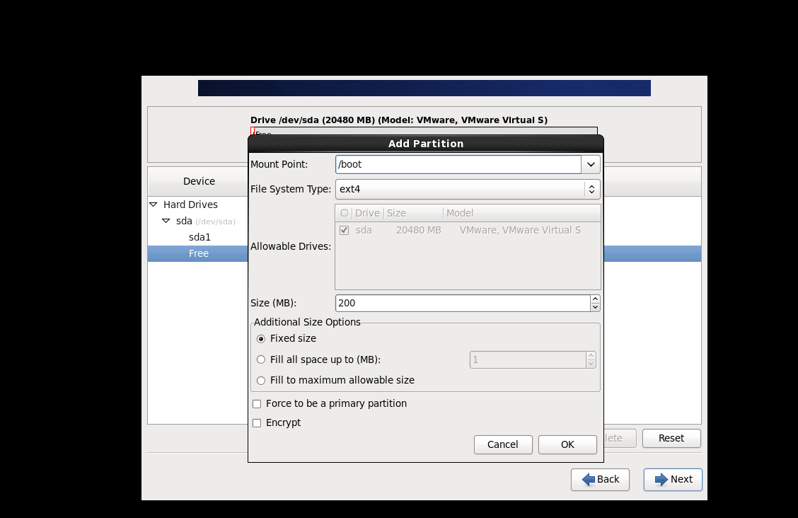 26.首先创建/boot分区(500mb就够了,主要是放引导数据的)