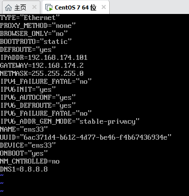 vi /etc/sysconfig/network-scripts/ifcfg-ens33