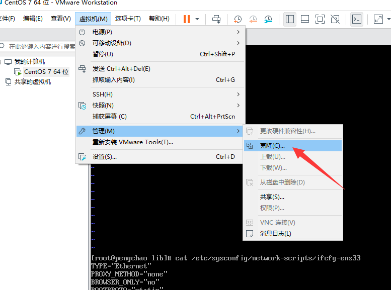 将要克隆的虚拟机关机,右键点击要克隆的虚拟机: