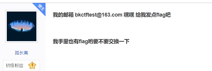 我们看到他说他有flag,或者跟他交换flag,163是网易邮箱,我们试着去登陆,需要验证码,很蛋疼,不能爆破,目前技术太菜,不会绕过,密码是a123456