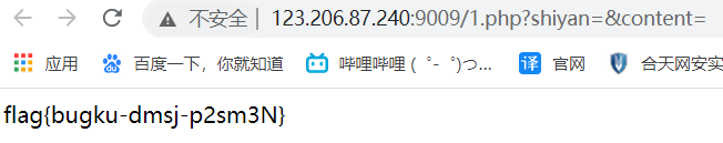 因为extract()会把符号表中已存在的变量名的值替换掉,所以制造GET请求?shiyan=&flag=也就是利用新传入的值为空的flag替换原有的flag的值。构造空等于空,成功输出flag的值