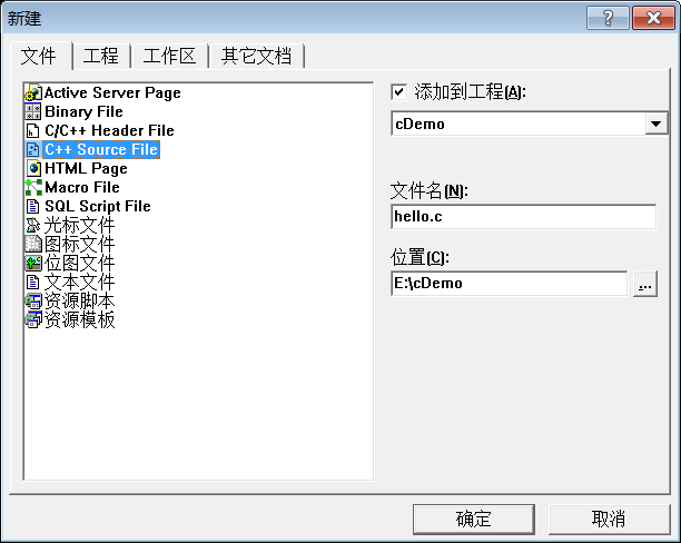 创建一个空白程序:文件——>新建——>文件——>C++ Source File