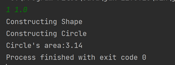 题目详细分析:本题中与上一次的图形继承基本设计编写逻辑相同,而在其增加了的就是使用了多态机制:多态就是不管你现在要是使用的子类是什么,我在创建对象的时候都是以父类的形式来创建,而直接通过来调用父类中有的方法,而在子类当中需要写的就是继承父类的方法来重写从而达到计算图形面积的作用,而再main方法看上去调用的是父类当中的方法来计算面积,但是程序底层调用的是子类当中已经进行重写了的方法,从而可以达到计算的额面积是准确无误的,如果父类的对象想要调用子类当中特有的方法,那么就需要对于这个对象进行强制类型转换,这样现在这个对象不仅在底层上是子类的对象,在表面也是子类的相应对象,直接可以通过这个对象引用来直接调用子类当中的方法。 输入:1 1 1 2.3 3.2 3.2 6.5 3.2 4.2 输出: