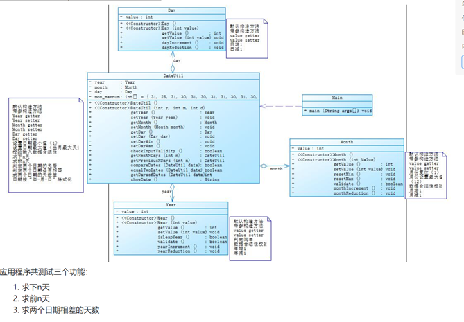 2、 日期问题面向对象设计(聚合一) (35 分) 题目详细: 设计如下几个类:DateUtil、Year、Month、Day,其中年、月、日的取值范围依然为:year∈[1900,2050] ,month∈[1,12] ,day∈[1,31] , 设计类图如下: