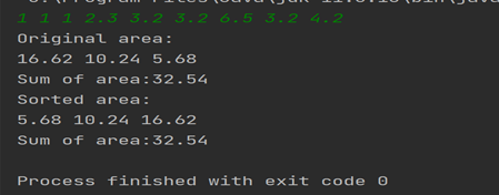 System.out.printf("\nSum of area:%.2f\n",sumArea);